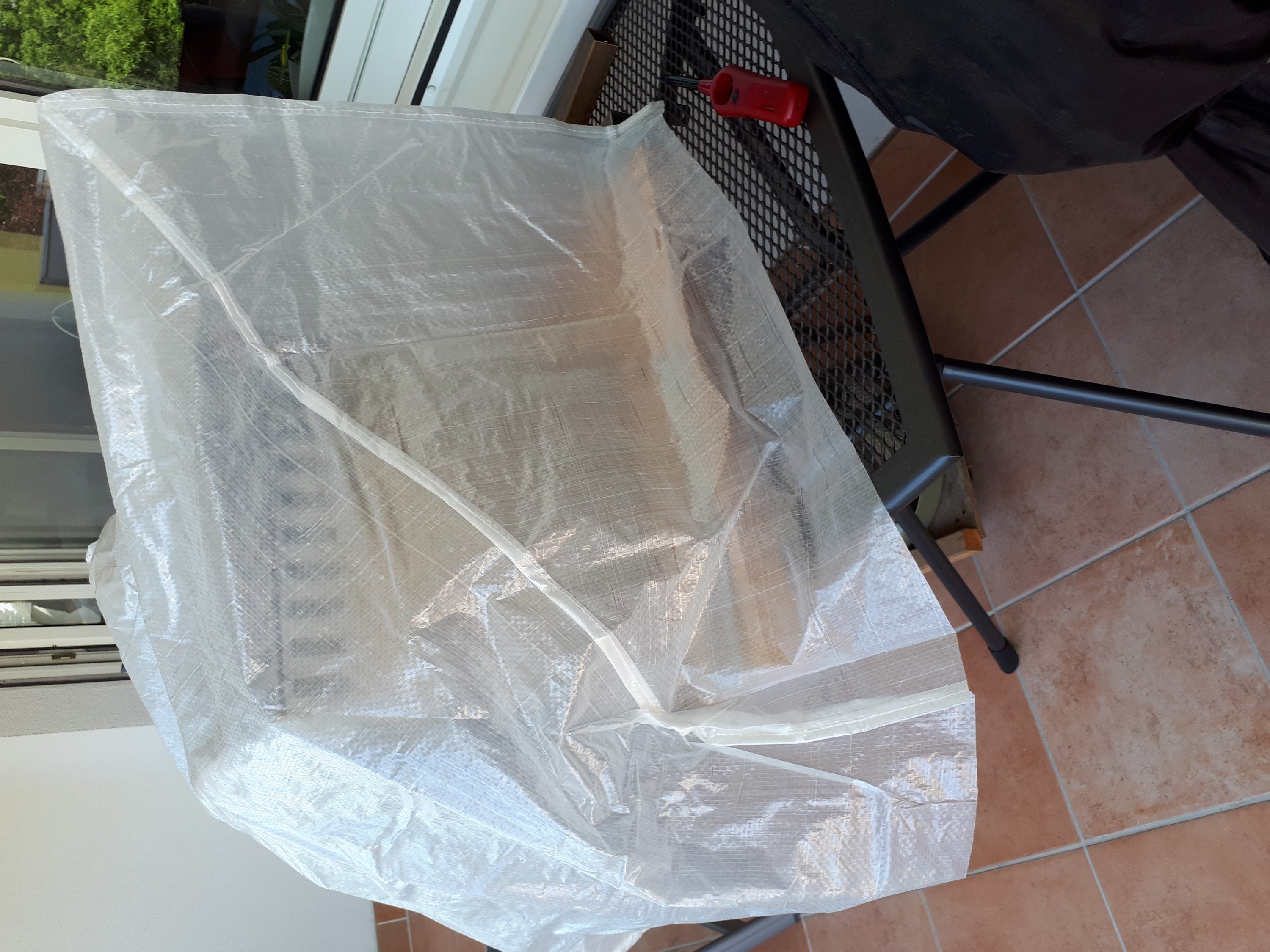 Die blauen Ikea-Tüten passen auch perfekt über den Twin. Sicher nicht absolut wasserdicht, aber solange der OHG nicht im Monsun steht ists ausreichend.