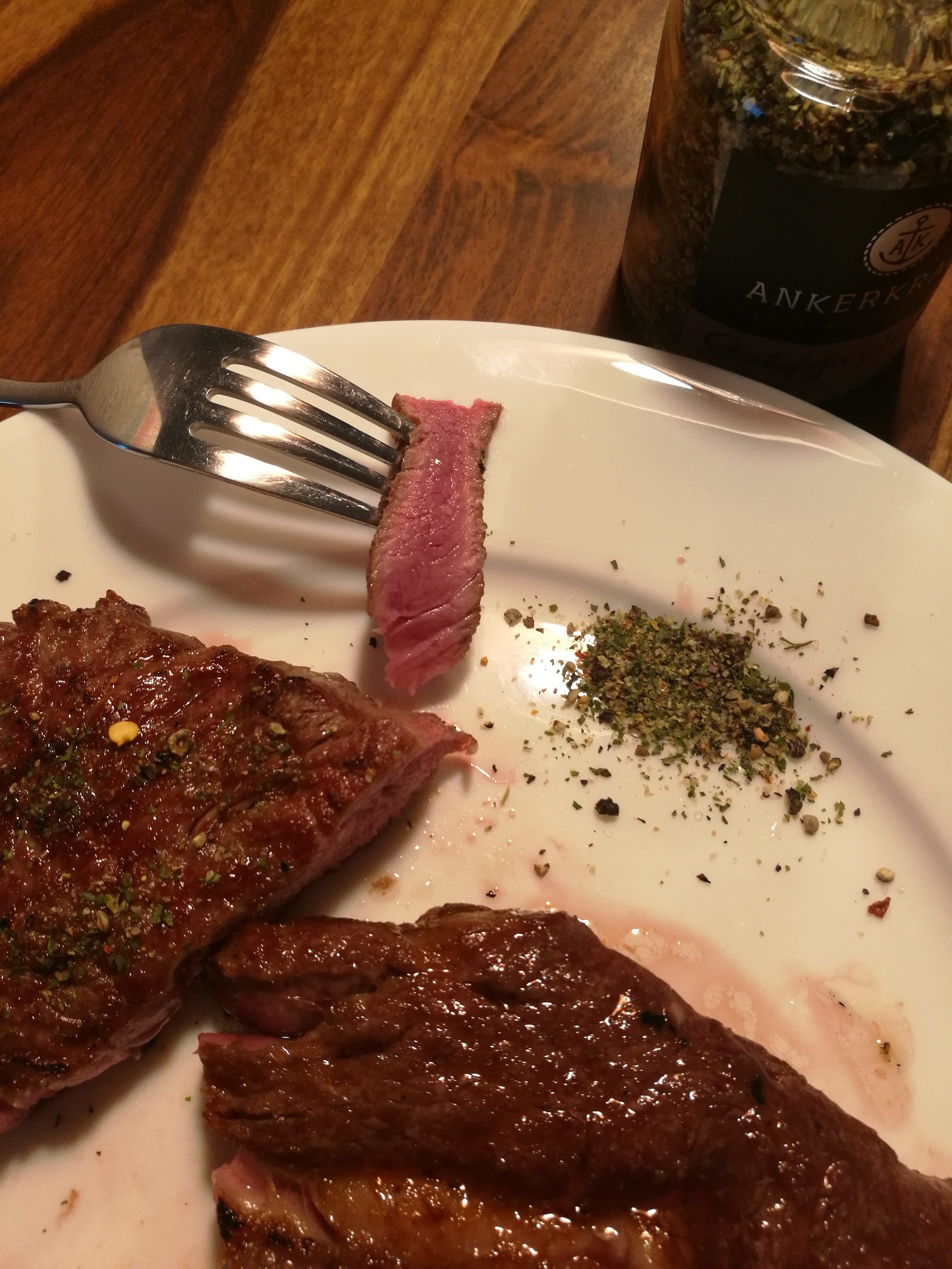 Schönes Ergebnis, ich hätte lediglich die Steaks dicker geschnitten.