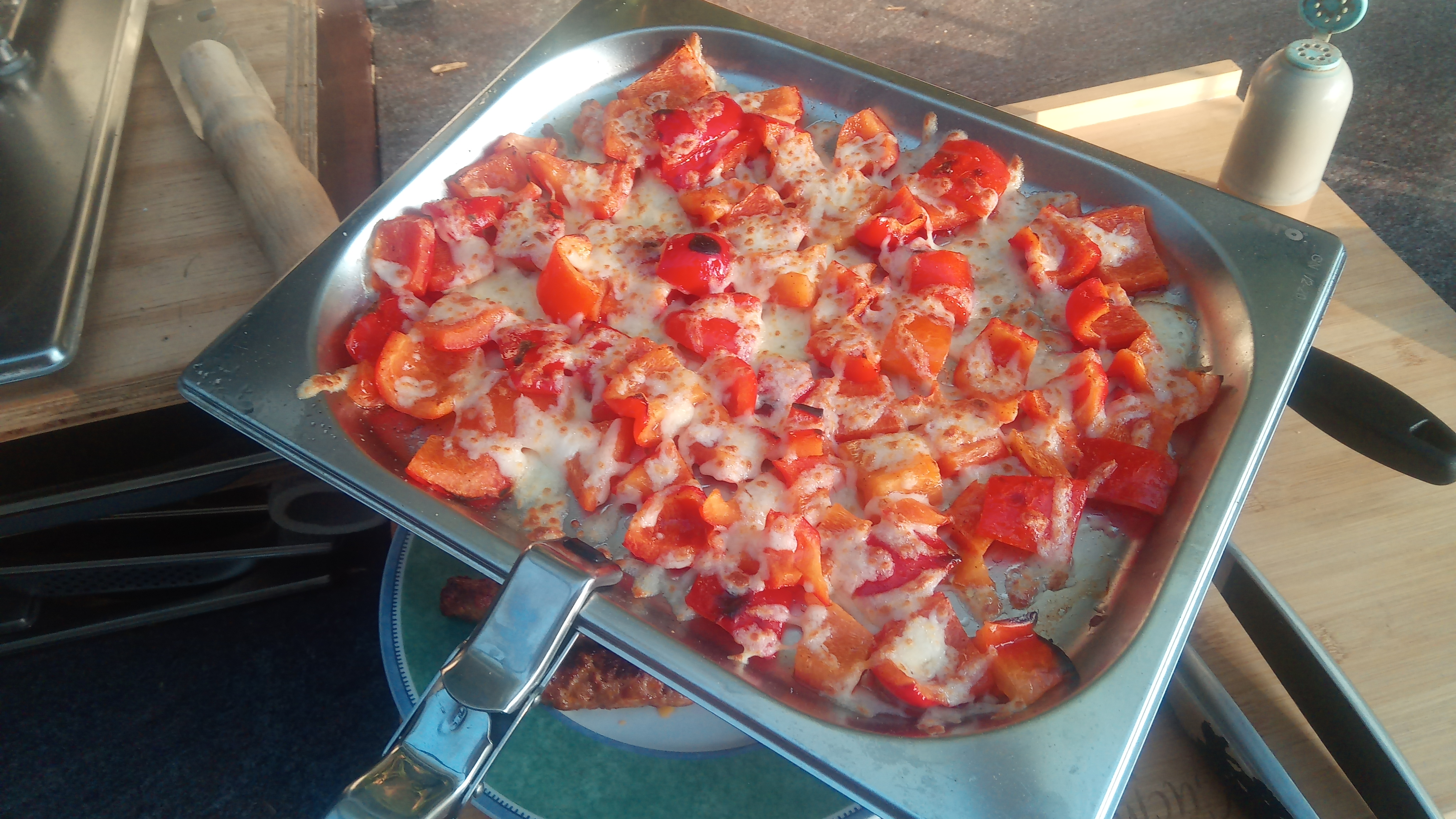 Dann noch Käse auf die Paprika und nochmal kurz angebrutzelt.